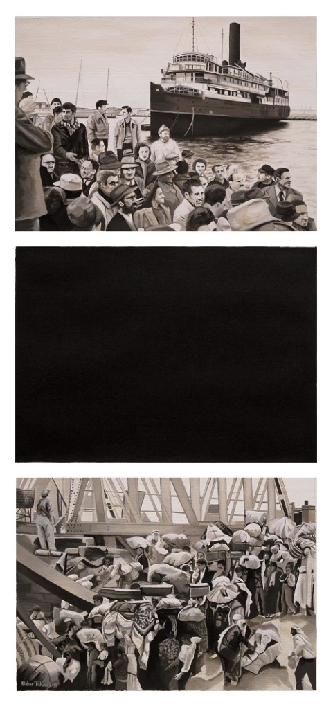 Rush to occupy, Forced to flee, Catastrophe in between,Acrylic on paper